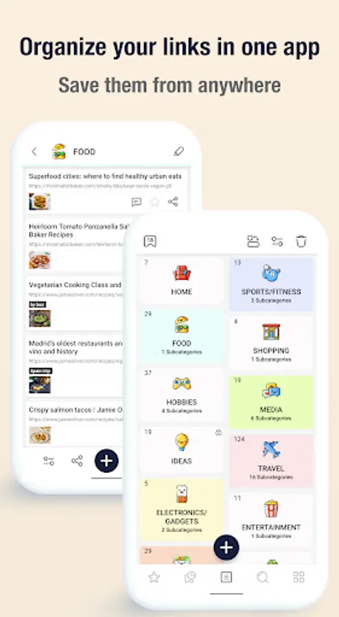 Save and categorize bookmarks from apps or browsers. Access them quickly and easily