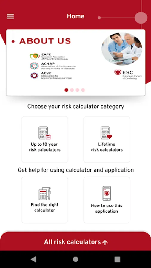 The ESC CVD Risk Calculation App is designed for healthcare professionals. It provides calculators assessing individual cardiovascular risk. It includes calculators for primary and secondary prevention in various populations: