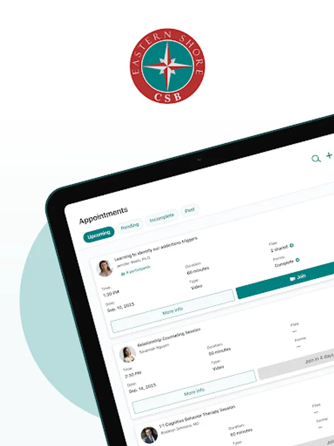 Eastern Shore Community Services Board’s “My ESCSB” App for Mobile Devices. Your home for Tele-Health at your fingertips along with a Client Portal to help you stay engaged with your providers.