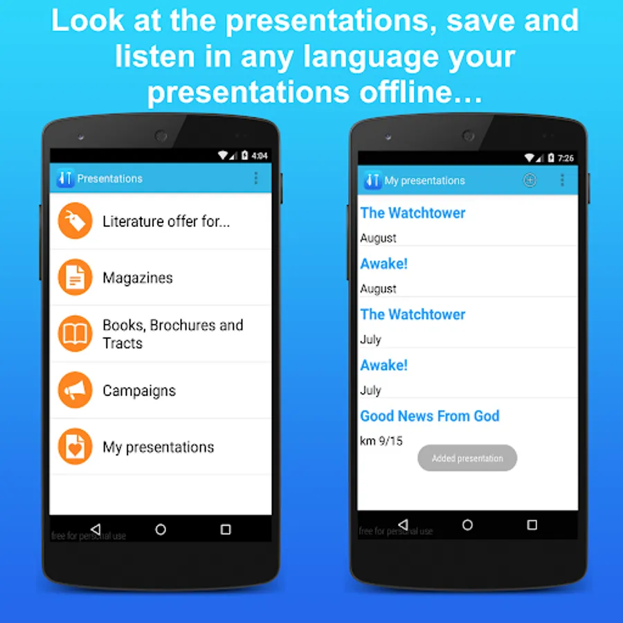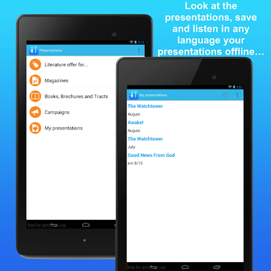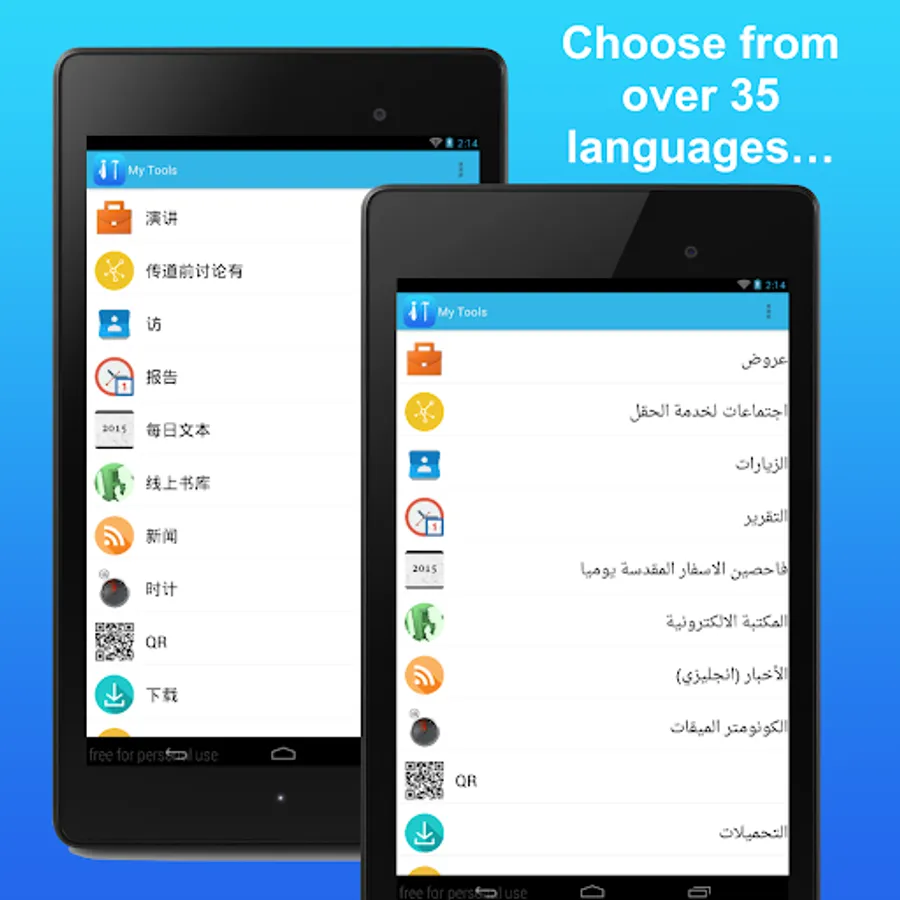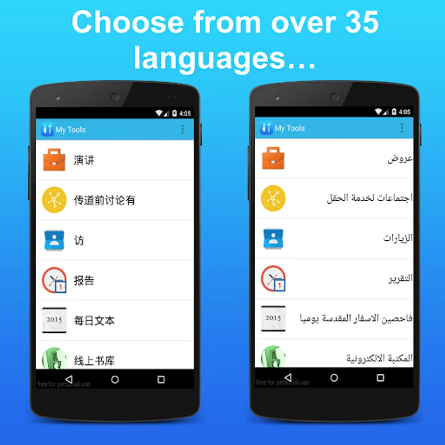 Dear Brothers, thank you very much everyone. We are brothers and almost 500,000 worldwide who use daily My Tools in our ministry and in our meetings. It is a pleasure to work for you all. Recent changes have allowed practically Tools My everybody got in over 35 languages. Thank you for your affection. We received many emails daily from around the world.We continue growing and improving every day by your side. A hug from your brothers who love you.
