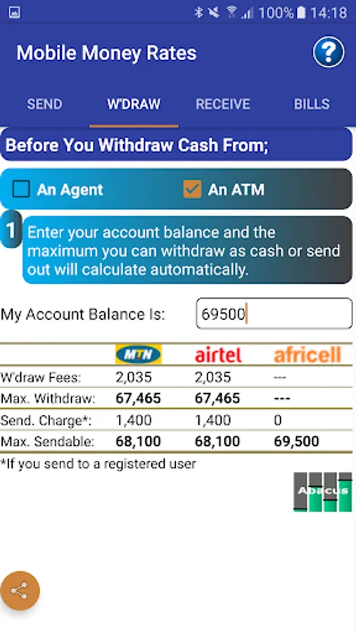 -Calculate the maximum amount of cash (and leave a zero balance) that you can withdraw versus the current account balance that you have on the mobile money account.-