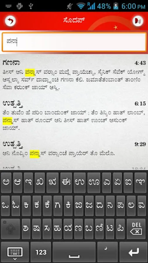 - Konkani (Kannada script) keyboard for advanced search of words in Konkani (Kannada script).