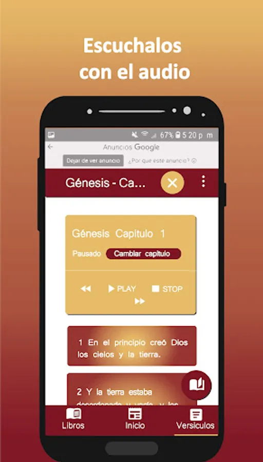 • Several languages with their respective audios, so you can listen to the word of God and if you download the audios you can listen to them without the need for internet.