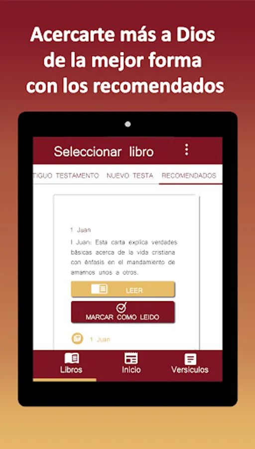 • It is divided by books, but also by verses and has a section to read recommendations.