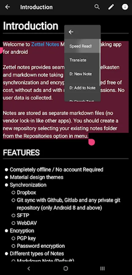 Speed Read plugin for Zettel Notes Markdown Note Taking App.