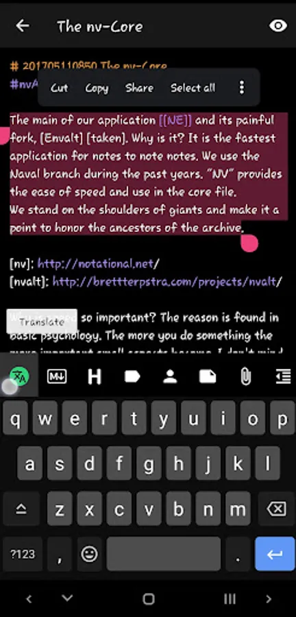 Translate Plugin for Zettel Notes Markdown Note Taking App.