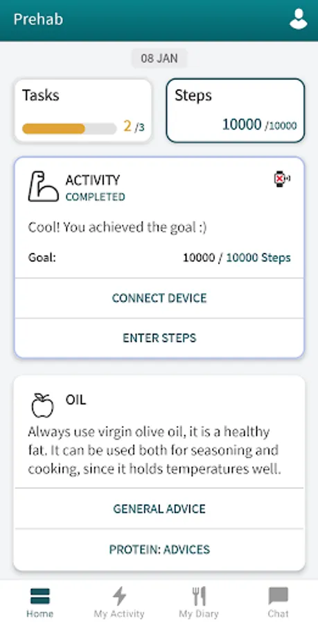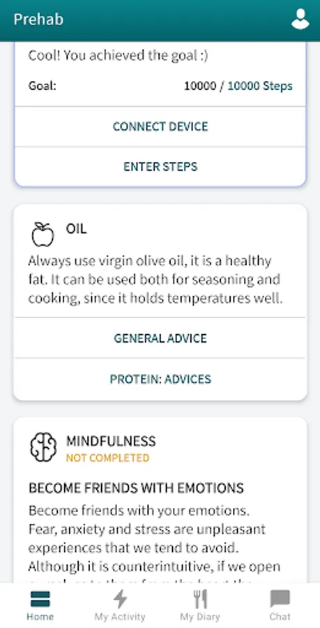 Prehab is an application that offers support from clinicians during the prehabilitation program