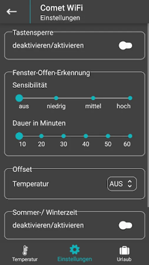 Bitte beachten Sie, dass die beschriebenen Funktionen der App nur in Verbindung mit einem programmierbaren Heizkörperthermostat Comet WiFi der Firma EUROtronic Technology GmbH zur Verfügung stehen.