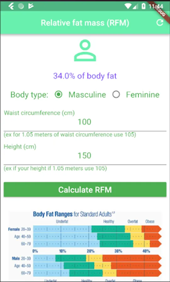 RFM is a more accurate indicator than BMI. For example, when using BMI a body builder with low fat could be described as obese with high heart disease risk. It does not happen when using RFM.