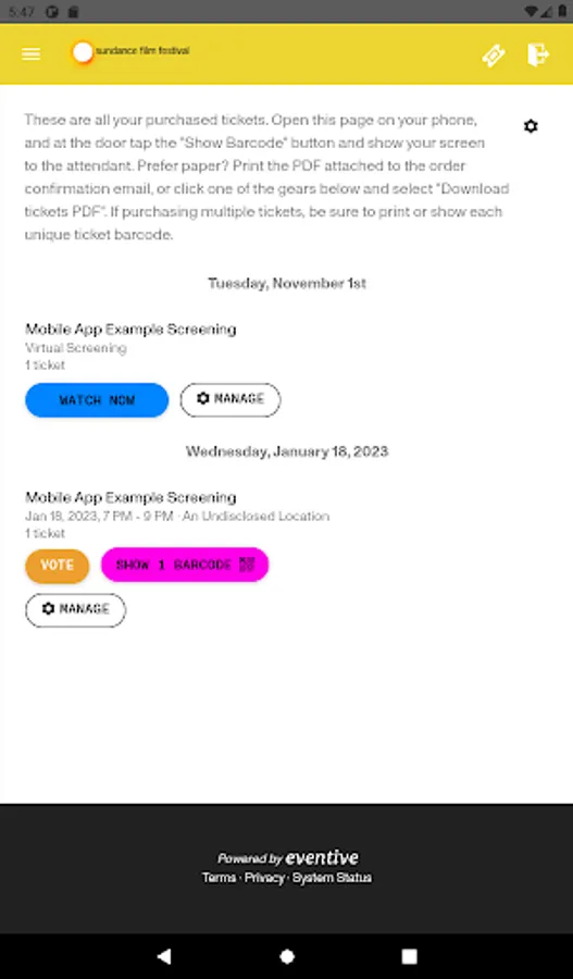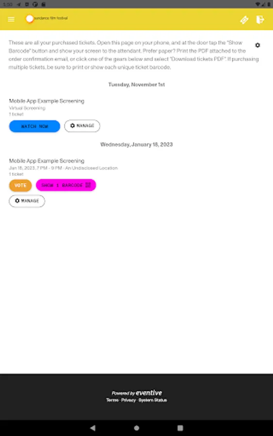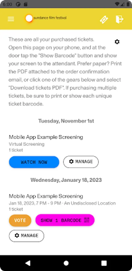 Note: Visit festival.sundance.org to purchase passes and packages; only single-film ticket purchases and ticket selections can be made using this app.