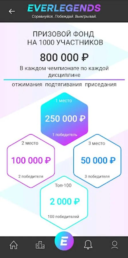 In this regard, please note that the rules on rewards during the beta testing period are not applicable under any circumstances, the nominal payment for participation in any of the announced championships is 1 rub. The Organizer will announce the completion of beta testing in the mobile application, as well as in the official groups of social networks. Any claims against the Organizer are considered invalid. Our goal is to bring a quality product to the market with your help. Thank you for your patience, understanding, substantive and honest feedback.