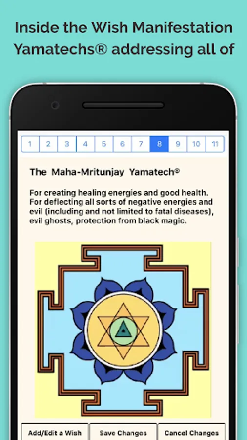 In the heart of the Wish Manifestation app is the Yamatech®. A metaphysical tool inspired by the Yantra and Mandala ancient paintings and how they were used in the Hindu and Buddhist traditions. Furthermore. They then have been modified, enhanced, amplified, and animated using technology.