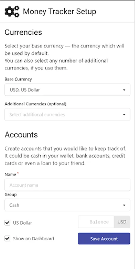 Money tracker with exchange currency
