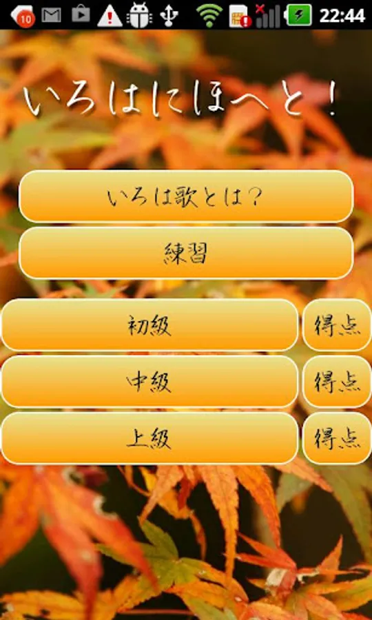 画面にランダムに表示されたいろは歌を順番にタッチしていき、クリアタイムを競いながら「いろは歌」も覚えよう!