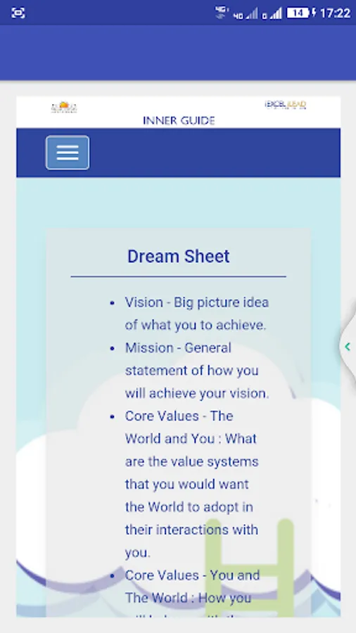 The Inner Guide is a 40-day Almanac designed to apply the principles learnt in the iEXCEL iLEAD program for business leaders, decision makers and entrepreneurs in the mid-sized segment. The Inner Guide took off as a book and has now been upgraded to an app version for both mobile and website exclusive for IEIL participants. In 40 days we intend to help leaders enhance their awareness by honing their observation, perception at their workplace and in life in general.