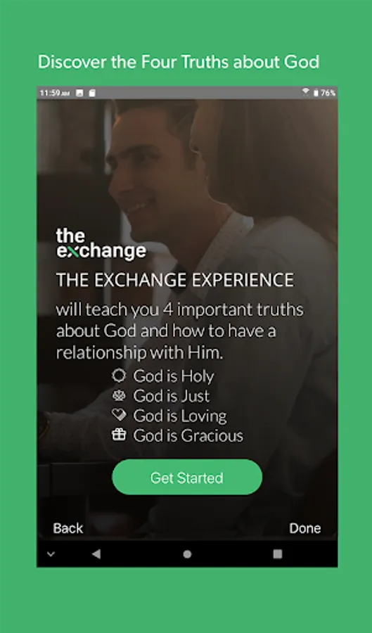 The Exchange Message App offers two valuable tools to help you explore your relationship with God and share your faith: