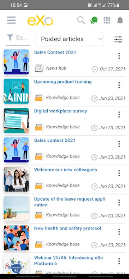 eXo Platform is an all-in-one digital workplace solution that helps you to transform your employees' experience and boost their performance. Based on a complete and integrated functional set, the solution allows a multitude of uses to fluidify internal communication, facilitate remote working, foster collaboration and manage knowledge.