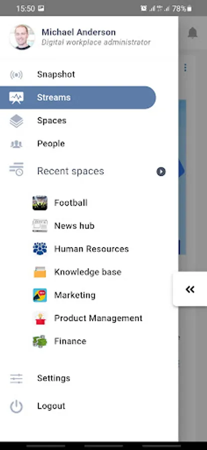 eXo Platform’s mobile app is based on a simple and intuitive design, the app allows your teams to access their digital workplace, be notified about important things and access all of the platform’s features wherever they are.