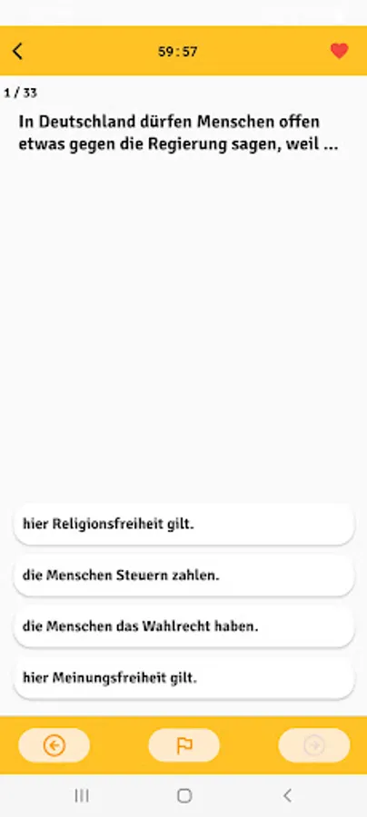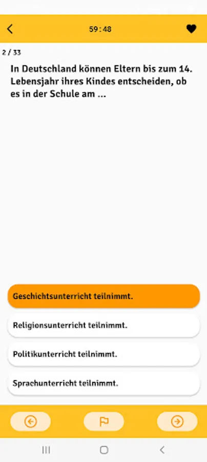 With this citizenship test app you can easily prepare for the citizenship test in Germany. To become a German citizen, you must pass the citizenship test. This test contains 33 multiple-choice questions about life, society, rules and laws in Germany, as well as questions about where you live. The test lasts one hour and you must answer at least 17 questions correctly to pass the test.