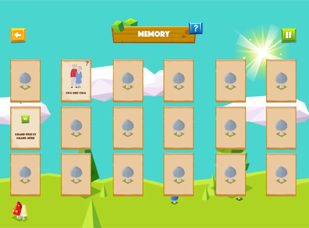 The further your kids progress on the map, the more words they will learn. All images and maps can be flipped in the app and the terms are spoken in the source language. As soon as the correct pairs have been found or the cards have been assigned correctly, the German words are spoken and can be repeated.