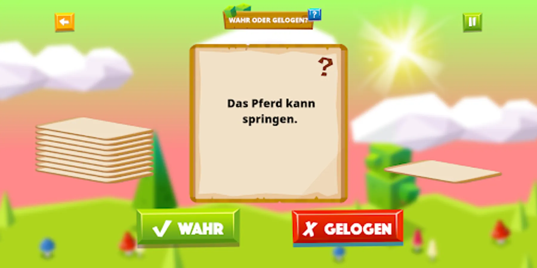 Through a variety of interactive educational games, children can learn new words, phrases and sentences through play. Our app uses fun animations and engaging graphics to make learning an interesting experience. The simple navigation and clear symbols enable problem-free operation of the app even with little knowledge of German.