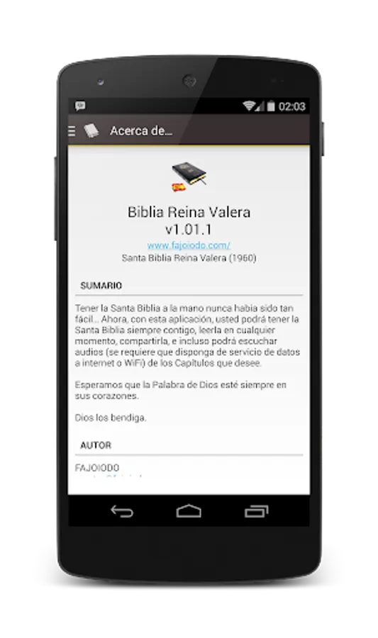 Having the Holy Bible on hand had never been so easy ... Now with this application, you can have the Holy Bible always with you, read it at any time share, and can even listen to audio (it requires you to have service Internet data or WiFi) of Chapter choice.
