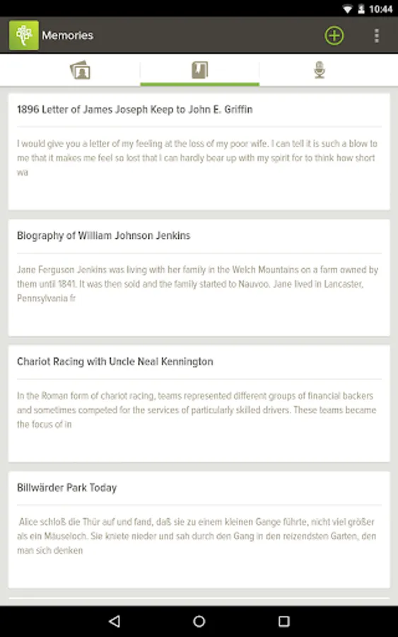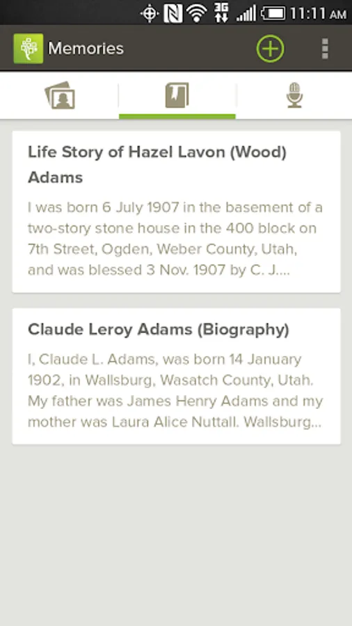 Capture photos or audio of important family moments, such as recitals, graduations, reunions, and memorials, and add them to your family tree.