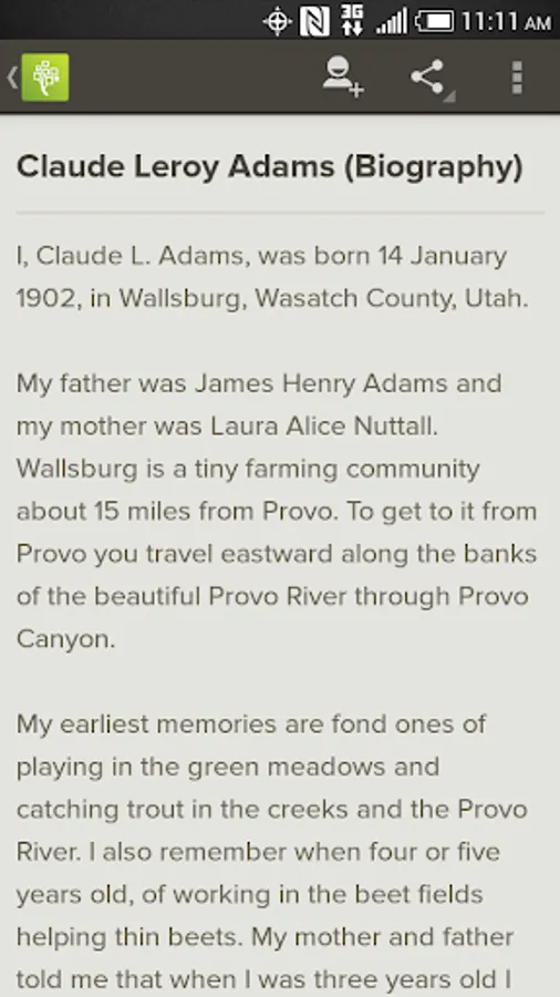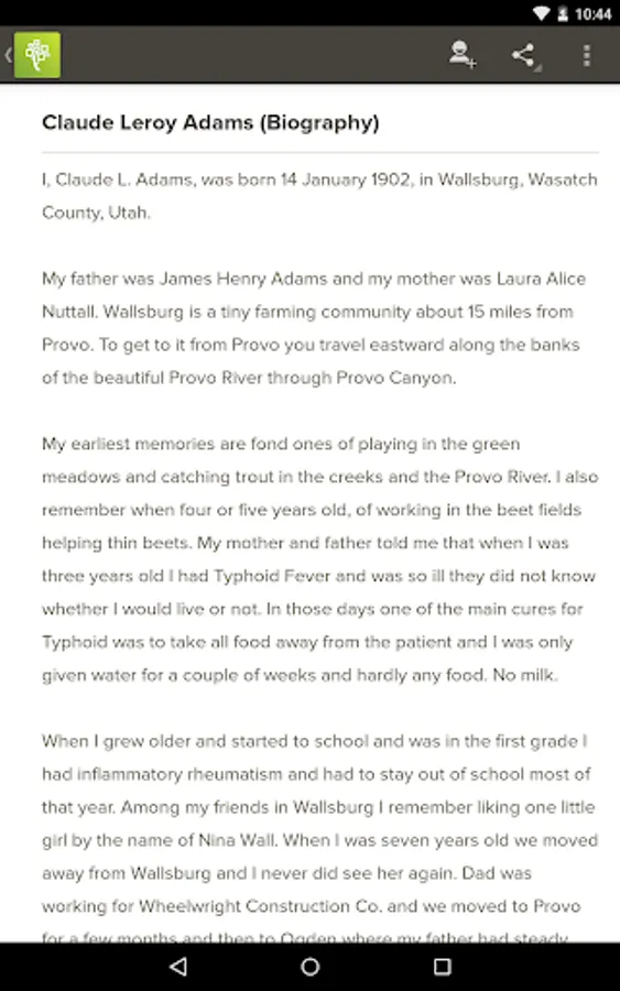Identify relatives in photos, stories, and recordings. Those memories are automatically shared in the free FamilySearch Tree app and on the FamilySearch website.