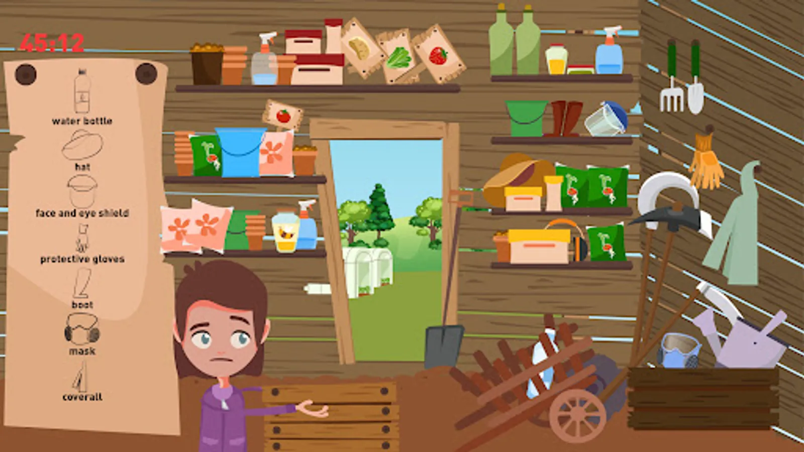 Field, Orchard and Greenhouse. These themes were identified as agricultural environments in which most of the significant hazards of child work in agriculture occur in the Lebanese context. The game consists of the player helping a rural child character, aged 14 and above, in the process of gathering seeds as rewards for completing safely agriculture-related activities. The seeds are therefore symbolic of rewards for successfully and correctly meeting the challenges of the game at each level. Different games are rewarded with different numbers of seeds. The seeds are used as ‘exchange currency’ to buy other items such as trees, with which to develop the ultimate reward which is their own customized Personal Garden.