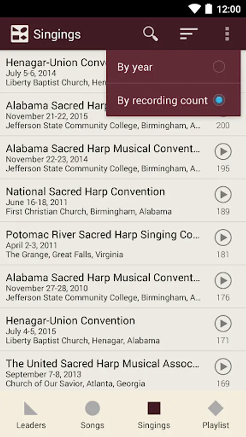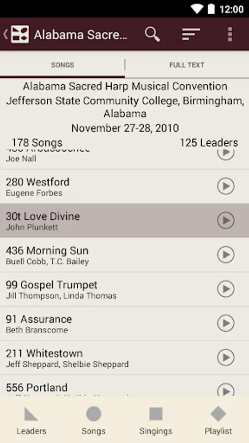 FaSoLa Minutes offers new ways to view and search the minutes of Sacred Harp singings from The Sacred Harp: 1991 Edition since 1995. All proceeds from the sale of this app will be donated to the Sacred Harp Musical Heritage Association, a 501(c)(3) non-profit organization whose purpose is the preservation and perpetuation of Sacred Harp singing and its traditions.