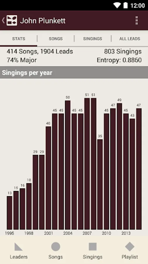 Learn more about the favorite songs of your singing friends. Learn the top leaders of your favorite song. Discover your entropy score.