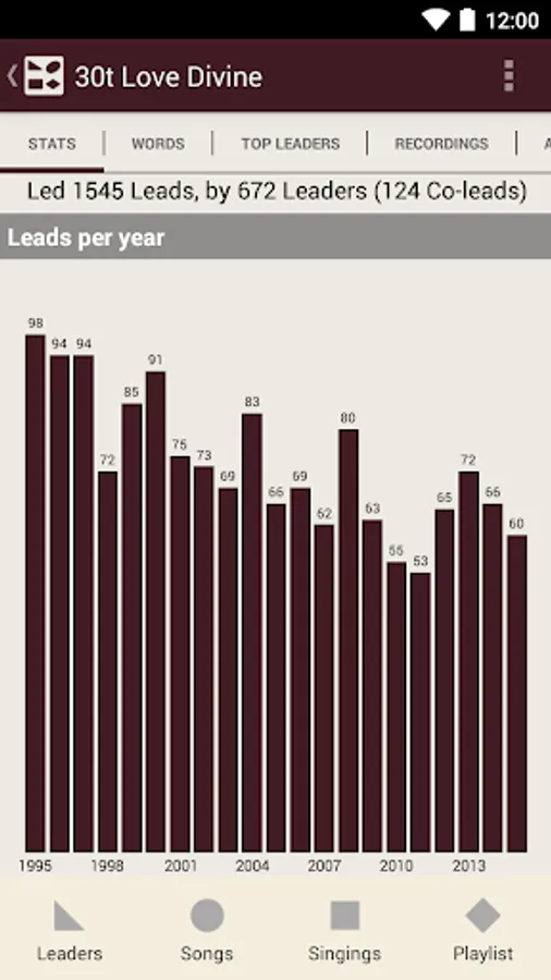 Identify the song that’s been stuck in your head all morning. Decide on a song to lead when the one you were planning on leading has already been used. Track the popularity of different songs over time.