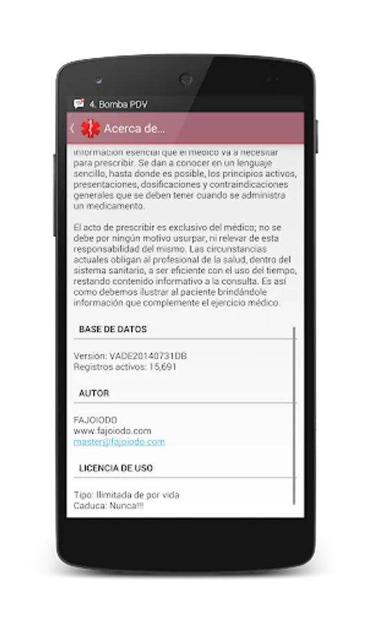 NOTE 1: This program is fully functional, but because I can not publish applications for sale (being of Venezuela ... Google policies), this will remain operational only during the first 365 continuous days from the date installation, on a trial basis. For the application without limitations query (annual leave), make the application of the same through the application, from the module "Information", "Payment Information".