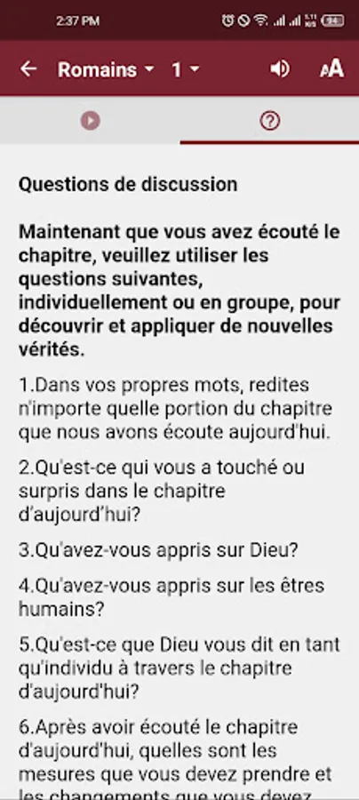 ► Utilisez les questions d'étude biblique intégrées pour la méditation quotidienne et la discussion de groupe sur les Écritures audio.