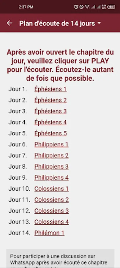 5. Rejoignez l'un de nos groupes WhatsApp en ligne pour discuter des Écritures audio avec d'autres utilisateurs de l'application.