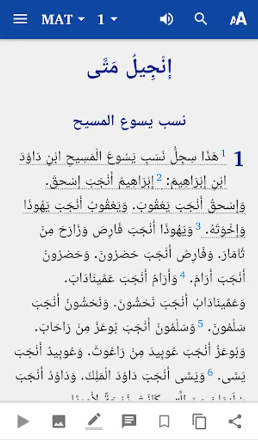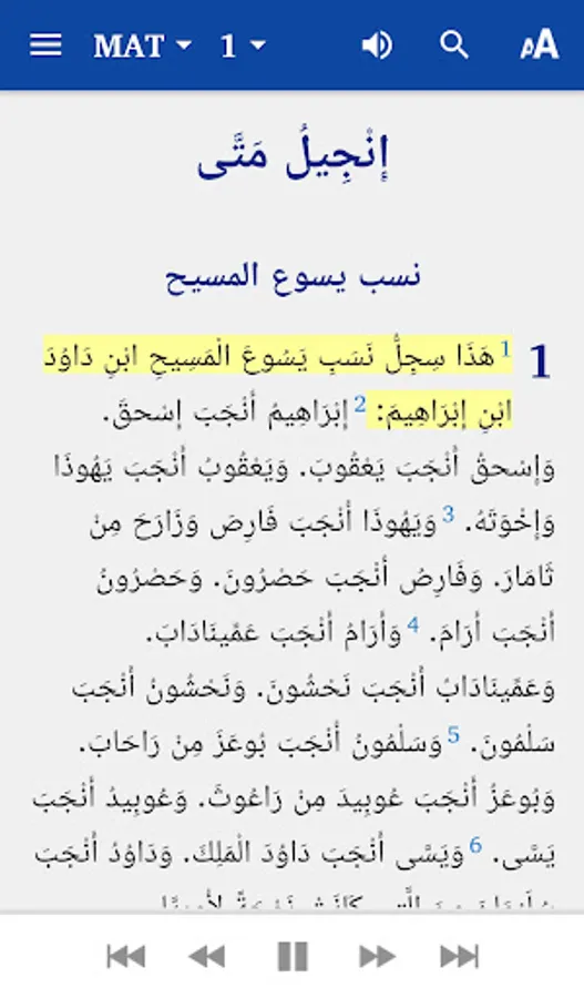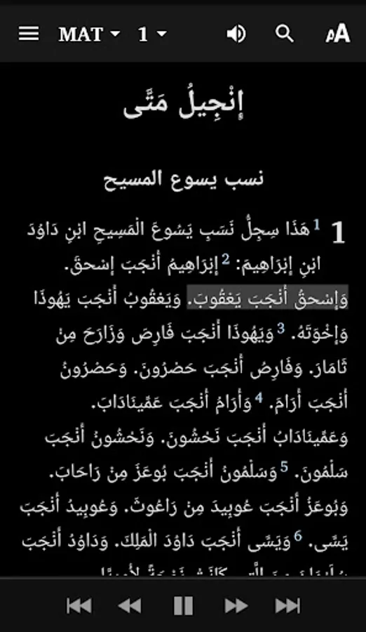 The text will highlight in sync with the audio like karaoke. Also, the audio can be started at any location within a chapter by tapping on the verse and then playing the audio.