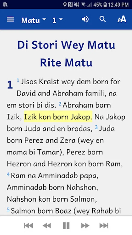 ► Synchronized Audio Bible — your phone will play the Nigerian Pidgin Bible, verse-by-verse!