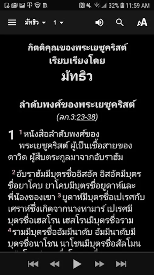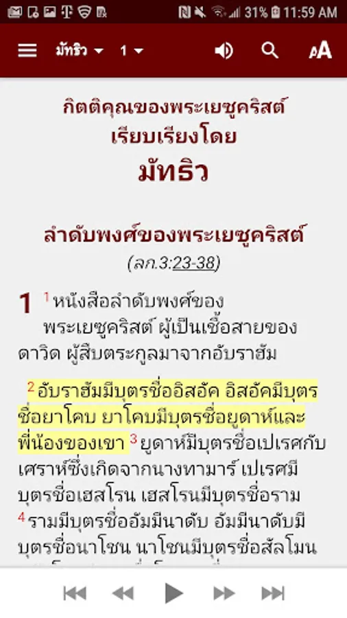 ► Synchronized Audio Bible— your phone will play the Thai TSV Bible, verse-by-verse!