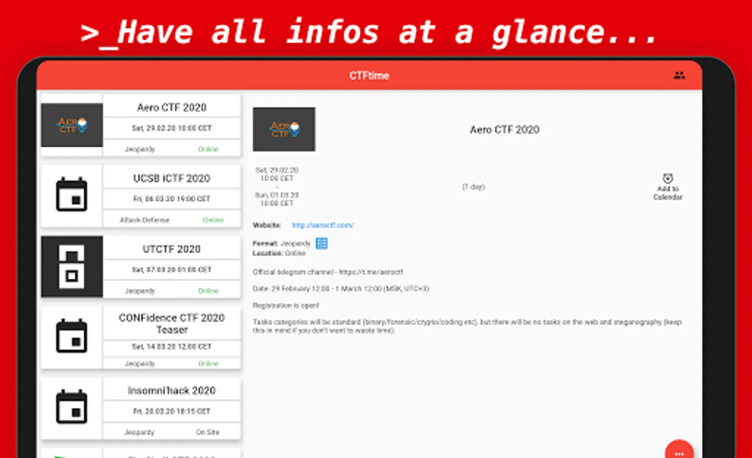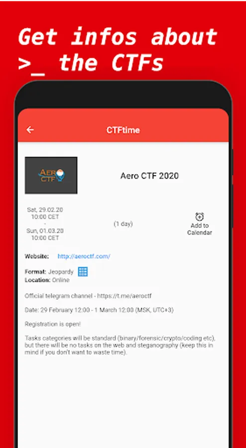 - Add CTFs to your calendar