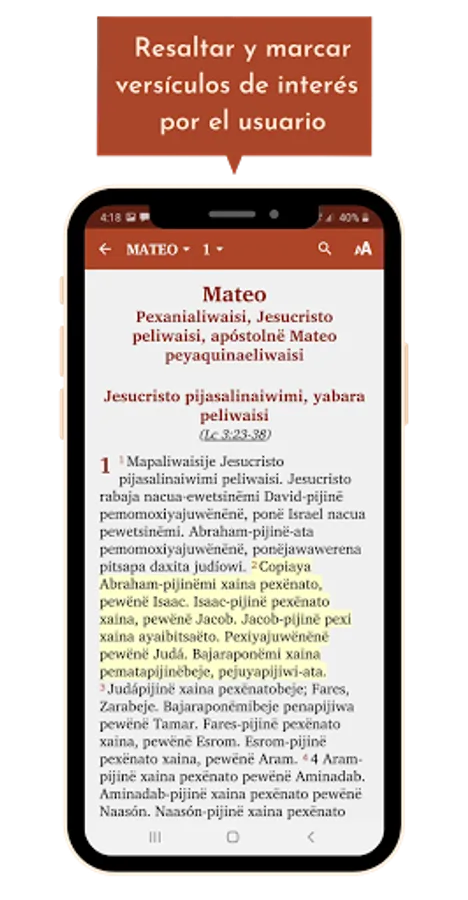 Guahibo Bible is a study tool to edify the church, evangelize and disciple. We value the Word of God as the absolute authority, being it a source of illumination and eternal advice; Having an application that presents it in digital form will ensure its due influence and impact on the lives of those who want to know God and connect with him and his word.