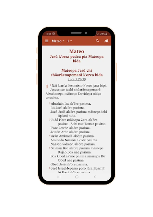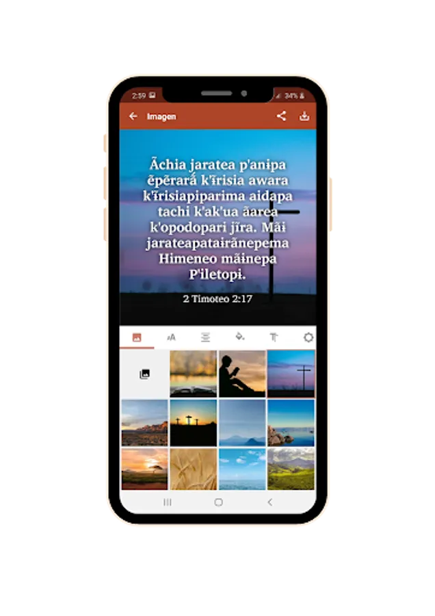 This application allows you to read, search for keywords, underline, configure the font, text size, contrast to adapt the background color to light conditions, highlight and mark verses of interest to the user, and also allows you to share verses through of social networks (WhatsApp, Instagram, Facebook), personalizing them with images included within the application or extracted from the gallery of the user's Android device.