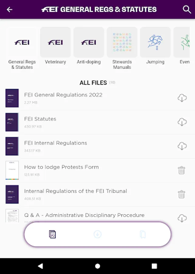 Take all the FEI rules and regulations with you wherever you go, with or without an internet connection! Use our search feature to instantly find exactly what you need.