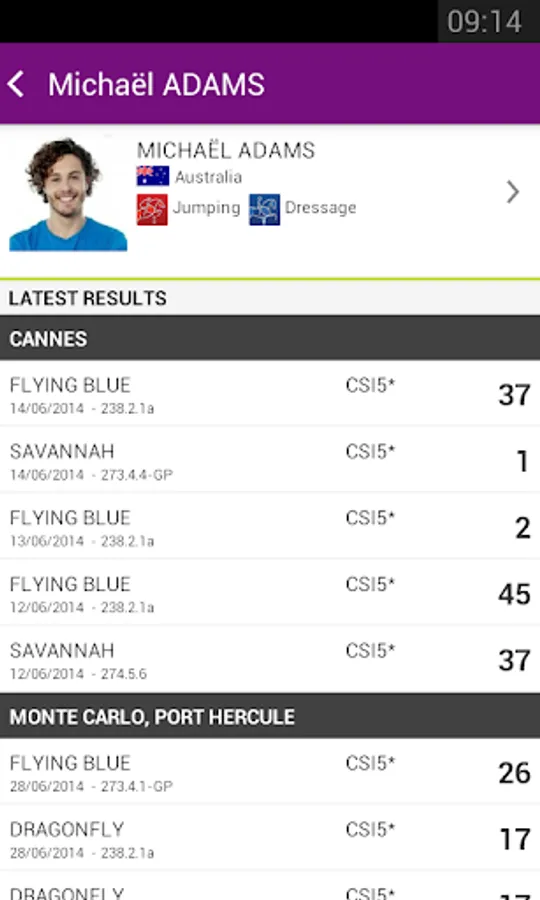 - Get a deeper look into your favourite athletes and horses with access to their results and biographies. Get to know where your favourite athletes started their international horse sport career, their hobbies, website, Facebook page, see their picture, and more!