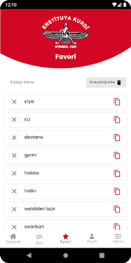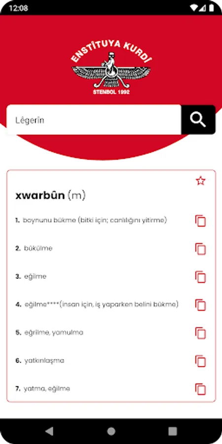 This dictionary is based on the study of Ferhenga Mezin a Kurdî-Tirkî (Kurdish-Turkish Big Dictionary) prepared by Zana Farqînî. The first edition of the dictionary was made in 2004, after which 4 more editions were made. The last edition was published in February 2022 in enlarged form. There are more than 175,000 items in the dictionary. Thanks to this application, this dictionary is now always at hand!