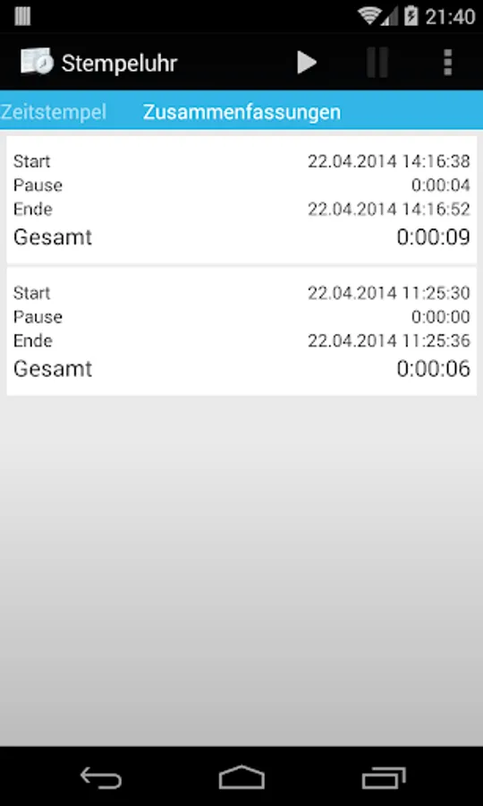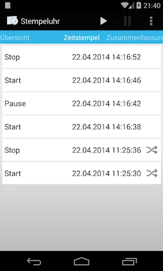 - Quick access to start, pause, stop function by notification in the Benachrichtungsleiste as well as by individual start, pause, stop buttons as a widget