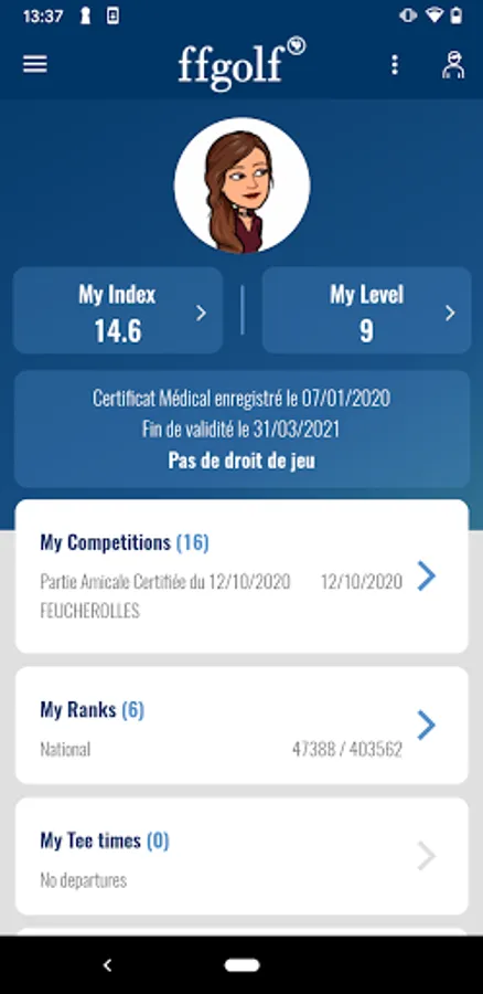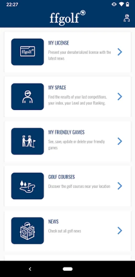 Extension of the licensed area on www.ffgolf.org, this application gives you access to all the information that is useful to you.