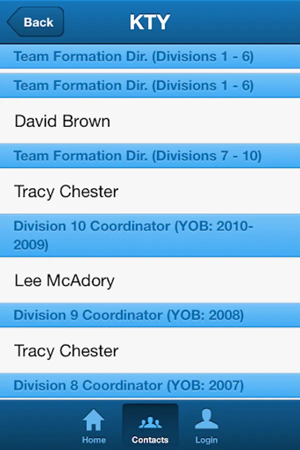 - League and staff contacts