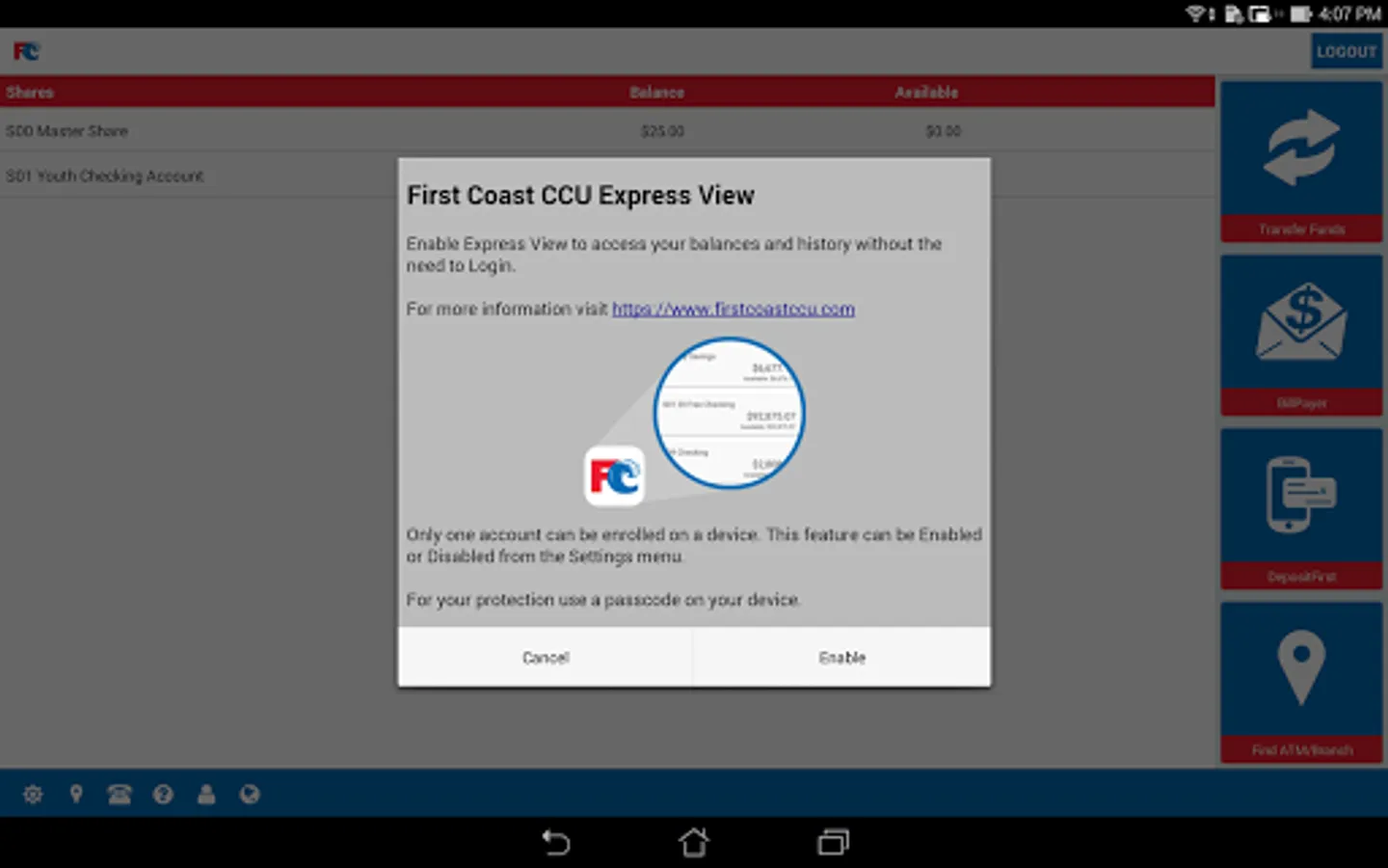 Manage your accounts, view copies of your cleared checks, and view transaction history. Busy members can also make quick transfers within First Coast Community Credit Union accounts and find the closest ATM in First Coast Community Credit Union’s network.