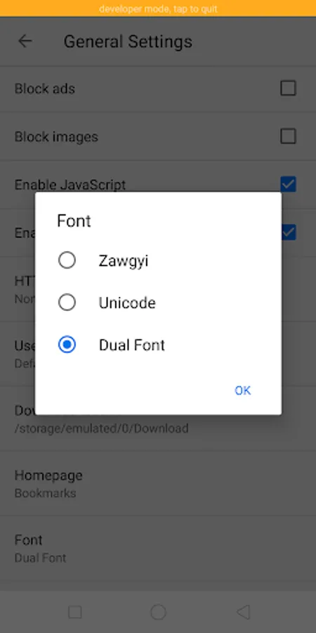 1st Myanmar Browser is Burmese fonts(Myanmar Unicode, Zawgyi-One & WinInnwa) supported android browser.
