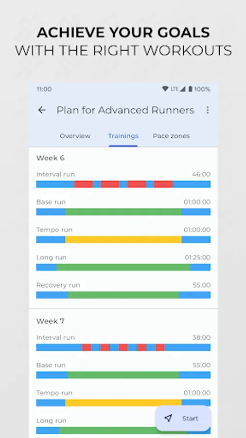 Choose Training Plan matching your personal goal (5K, 10K, half-marathon, marathon, etc.) and personalize it with custom Training Zones, schedule and more.
